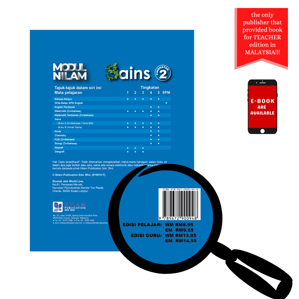Untuk buku sains tingkatan 1, 2 dan 3 buku a (modul nilam) mempunyai 2 versi,.